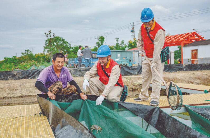 溧水區(qū)供電公司針對(duì)特色產(chǎn)業(yè)用電需求,發(fā)揮黨員服務(wù)隊(duì)隊(duì)員“人員熟、地形熟”的優(yōu)勢(shì),以黨員服務(wù)隊(duì)隊(duì)員為骨干,成立蝦蟹養(yǎng)殖保電服務(wù)隊(duì)。黨員服務(wù)隊(duì)隊(duì)員手提肩扛運(yùn)送物資,帶頭完成圩區(qū)蝦蟹養(yǎng)殖區(qū)域的線路改造,實(shí)現(xiàn)養(yǎng)殖區(qū)域供電全覆蓋。
