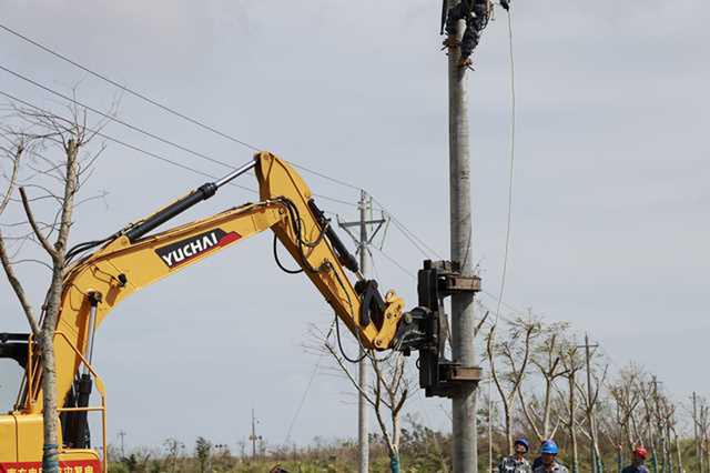 9月16日,在海南省文昌市鋪前鎮(zhèn)七嶺村七嶺2號(hào)臺(tái)區(qū)搶修復(fù)電現(xiàn)場,一臺(tái)身著“黃衣”、帶履帶的“龐然大物”,正揮動(dòng)著靈活的機(jī)械臂,伸出它的“鉗子”,穩(wěn)穩(wěn)地抓取12米多長的電桿,一氣呵成把電桿種到桿洞中。當(dāng)天,只用了3個(gè)多小時(shí),它就完成了10基電桿的立桿作業(yè)任務(wù)。
