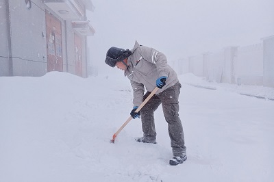 在冰凍中連續(xù)作業(yè)二、三個小時,冰雪落在他們的帽子上、衣服上、鞋上,凝結(jié)成僵硬的冰塊;吹在頭發(fā)上、胡渣上,化作冰花將他們變成“守護平安”的圣誕老人模樣。