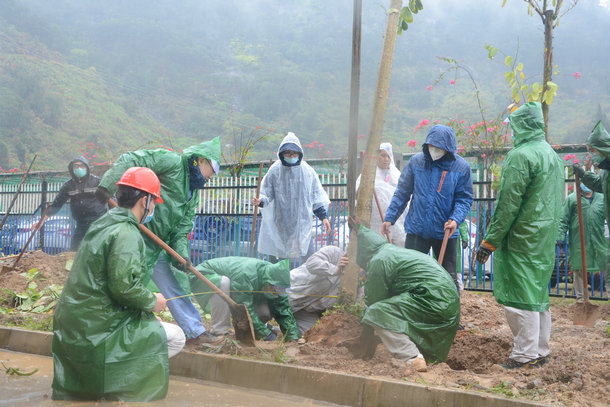 植樹前,該公司向參加活動員工發(fā)起了“踐行環(huán)保理念,爭當‘綠色播種者’”的活動倡議,號召員工在活動中踐行愛崗敬業(yè)、愛廠如家的精神,播種希望、靜待花開。隨后,植樹活動正式開始。