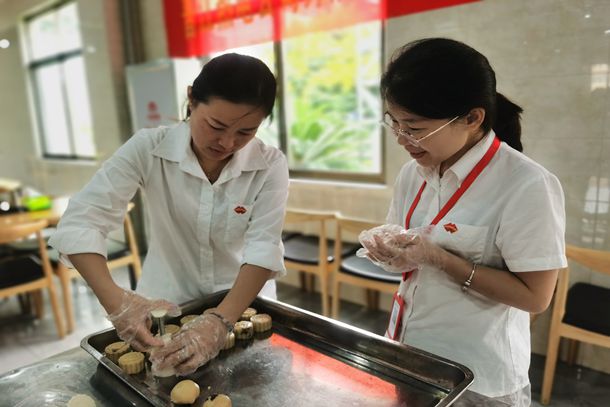 活動(dòng)當(dāng)天,該公司工會(huì)工作人員早早準(zhǔn)備了制作月餅?zāi)>呒梆W料等,大家圍在一起,忙的不亦樂乎,稱重量、分餡料、壓模型......雖然大家都是“新手”但在有經(jīng)驗(yàn)的“師傅”指導(dǎo)下,每一步都做得格外用心,大家邊做月餅,邊相互探討著做法。