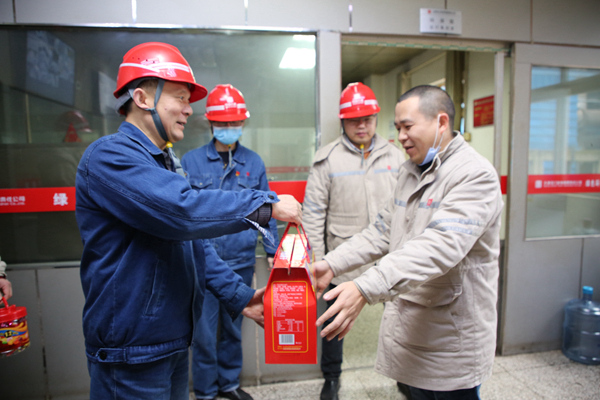 雷小平一行先后來到燃運運行值班室、環(huán)保運行值班室等現(xiàn)場,為生產(chǎn)一線人員送去餅干、糖果等新春慰問品。“值班室工作環(huán)境怎么樣?”“當前安全生產(chǎn)任務(wù)重嗎?”“身體和生活狀況如何?”慰問中,雷小平與生產(chǎn)一線人員親切握手,暖心交談,詳細了解了來煤接卸存儲、機組配煤摻燒、環(huán)保運行以及人員值班情況,并對即將啟動的環(huán)保集控室改造項目進行了詳細了解和指導。雷小平傾聽了職工對新年的展望,并為生產(chǎn)一線人員盡忠職守,默默奉獻的精神點贊,叮囑他們節(jié)日期間要加強值班管理,緊繃安全生產(chǎn)之弦不放松,過一個安定、祥和、喜慶的新春佳節(jié)。