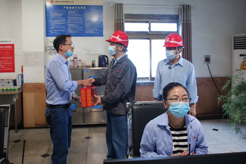 該公司黨委委員、副總經(jīng)理、工會(huì)負(fù)責(zé)人雷小平一行先后來(lái)到燃運(yùn)運(yùn)行集控室、環(huán)保運(yùn)行集控室、職工食堂、發(fā)電運(yùn)行集控室以及控制、燃管、檢修等部門,為生產(chǎn)一線人員、后勤人員送去飲料、涼茶等慰問(wèn)品。在各生產(chǎn)部門運(yùn)行集控室,雷小平與生產(chǎn)一線人員握手交談,詢問(wèn)了燃煤接卸、機(jī)組上煤、運(yùn)行調(diào)整及人員值班等情況,對(duì)生產(chǎn)一線人員堅(jiān)守在迎峰度夏第一線戰(zhàn)高溫、斗酷暑、保發(fā)電的奉獻(xiàn)精神表示肯定。他鼓勵(lì)各部門人員鼓足干勁,齊心協(xié)力做好迎峰度夏各項(xiàng)工作,助力企業(yè)切實(shí)履行好保電保民生的社會(huì)責(zé)任:燃運(yùn)人員要直面當(dāng)前四臺(tái)機(jī)組大負(fù)荷運(yùn)行燃煤頂格消耗的壓力,做好來(lái)煤集中接卸以及機(jī)組上煤工作;集控、環(huán)保運(yùn)行人員要把迎峰度夏各項(xiàng)安全發(fā)電措施做好做實(shí)做到位,確保四臺(tái)機(jī)組大負(fù)荷時(shí)期安全、環(huán)保發(fā)電;檢修人員要加強(qiáng)值班及時(shí)消除設(shè)備缺陷,確保不因設(shè)備問(wèn)題影響機(jī)組帶負(fù)荷。在職工食堂,雷小平對(duì)后勤人員在當(dāng)前疫情形勢(shì)下采取工作餐打包方式,竭盡全力滿足廣大員工早中晚就餐需求所付出的辛苦與努力表示感謝。他還叮囑大家做好防疫及防暑雙重措施,確保人員安全,全力維護(hù)企業(yè)安全穩(wěn)定的良好局面。