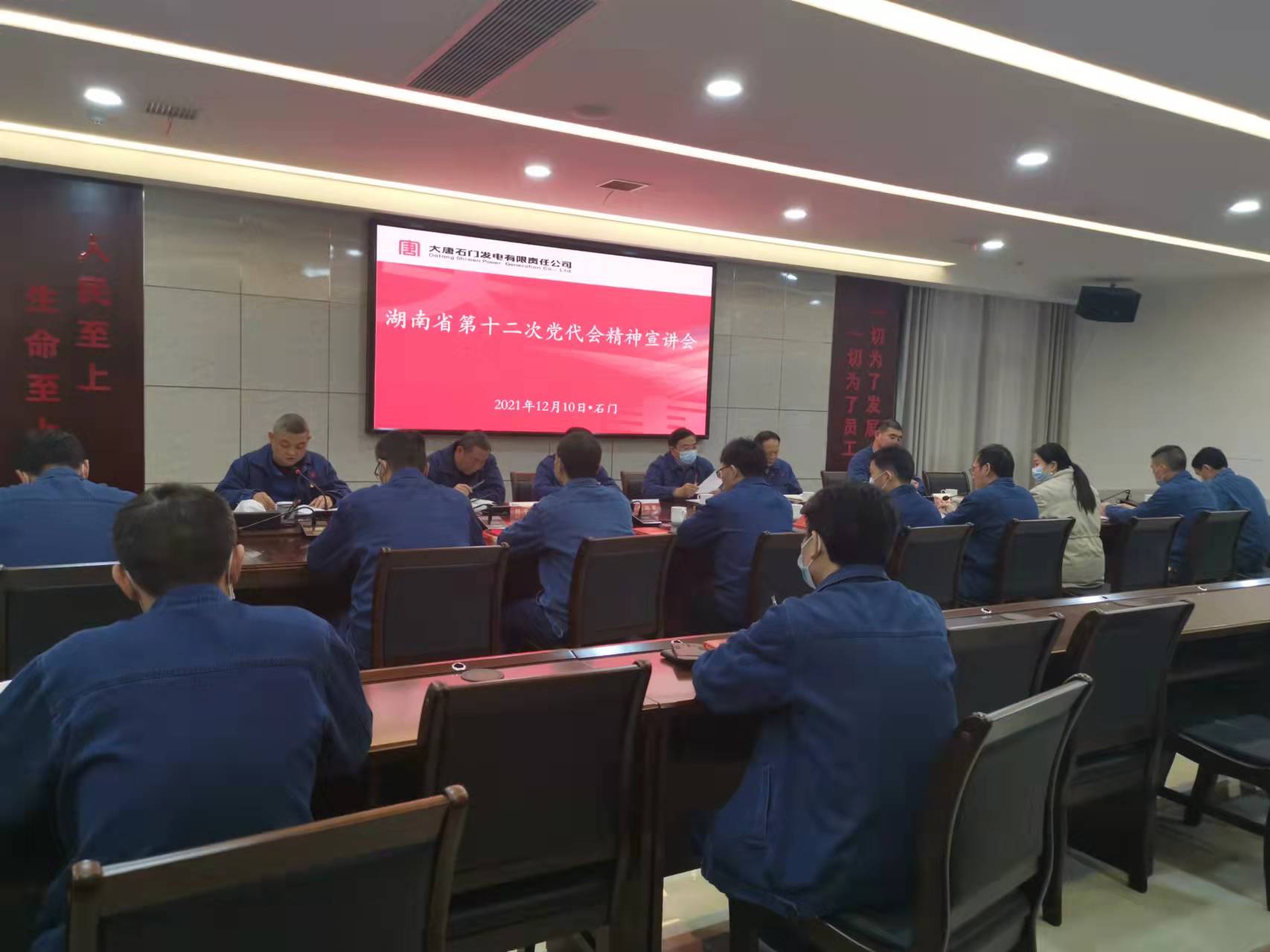 中國電力網(wǎng)訊 12月10日,大唐石門發(fā)電公司組織召開湖南省第十二次代表大會精神宣講會。會議由該公司黨委書記、總經(jīng)理楊萬格主持;該公司黨委委員、副總經(jīng)理雷小平,黨委委員、副總經(jīng)理劉陸軍,黨委委員、紀委書記寧柏偉,黨委委員、總工程師劉子奇出席會議。該公司項目部火電組負責人、湖南省第十二次代表大會黨代表周陵進行了大會精神宣講。