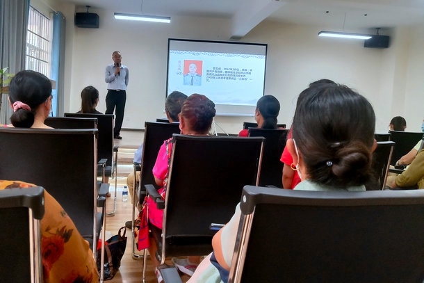 活動在《?;丶铱纯础犯杪曋欣_了序幕。大家一起聆聽了開遠市第五屆道德模范普玉成長年如一日照顧癱瘓母親孝行事跡,懂得了什么是“百善孝為先”,感受到道德的力量、榜樣的力量,接受了一次道德洗禮。齊聲誦讀《孟子·梁惠王上》中的經(jīng)典名句,從經(jīng)典詩文中,進一步感悟孝老愛親的意義。大家還就如何有效解決盡職履責與盡孝之間的矛盾,做到“忠孝兩全”進行了心得交流,活動最后,將鮮花送到道德模范普玉成手中,向道德模范表達由衷敬意。