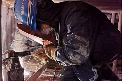 修復(fù)振打器磁軸,更換脫落的陰極線,對倒伏的陽極板進行清理、恢復(fù)、固定,唐匯軍就這樣一樣樣地、默默無聞地做著,偶爾工作間隙里,他會開兩句玩笑,緩和一下枯燥和疲憊。出了爐子,吃個工作餐,耽誤不到半個小時,又立即扎進了工作中,身邊的同事總是被他的工作態(tài)度激勵著。“不能偷懶?;?,必須檢查到位,修必修好。”爬出爐子時已經(jīng)腰酸背痛,唐師傅依舊微笑得那么純粹。這項檢修工作持續(xù)了半個月,才得以很好完成。