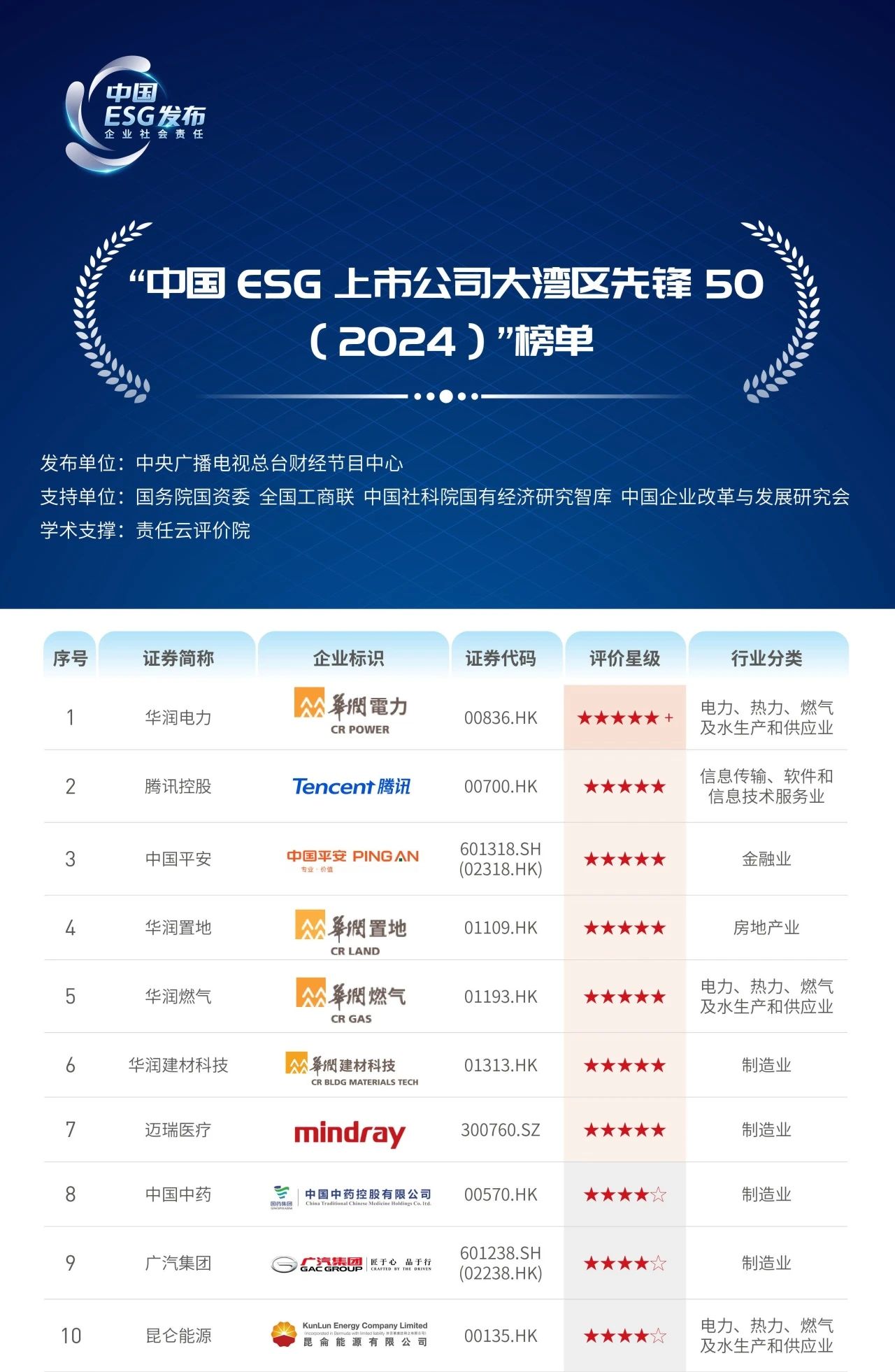 “中國(guó)ESG上市公司大灣區(qū)先鋒50(2024)”榜單