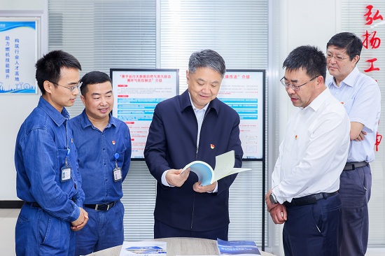 在江蘇公司,溫樞剛一行先后來到江蘇公司本部、清能分公司、綜合能源公司、南京燃機電廠、金陵電廠,親切慰問一線員工,深入調(diào)研江蘇清能集控中心、新能源智慧能源平臺、綜合能源光伏監(jiān)管中心和應(yīng)急指揮中心,南京燃機電廠黃慶工匠工作室、燃機大數(shù)據(jù)中心、仿真機中心、燃機部件展示室,金陵電廠運行集控室、職工創(chuàng)新工作室,詳細(xì)了解江蘇公司海上風(fēng)電生產(chǎn)運營、設(shè)備管理、科技創(chuàng)新、光伏建設(shè)與運維、綜合能源服務(wù)以及精益化管理平臺、非補燃壓縮空氣儲能電站運行等情況。