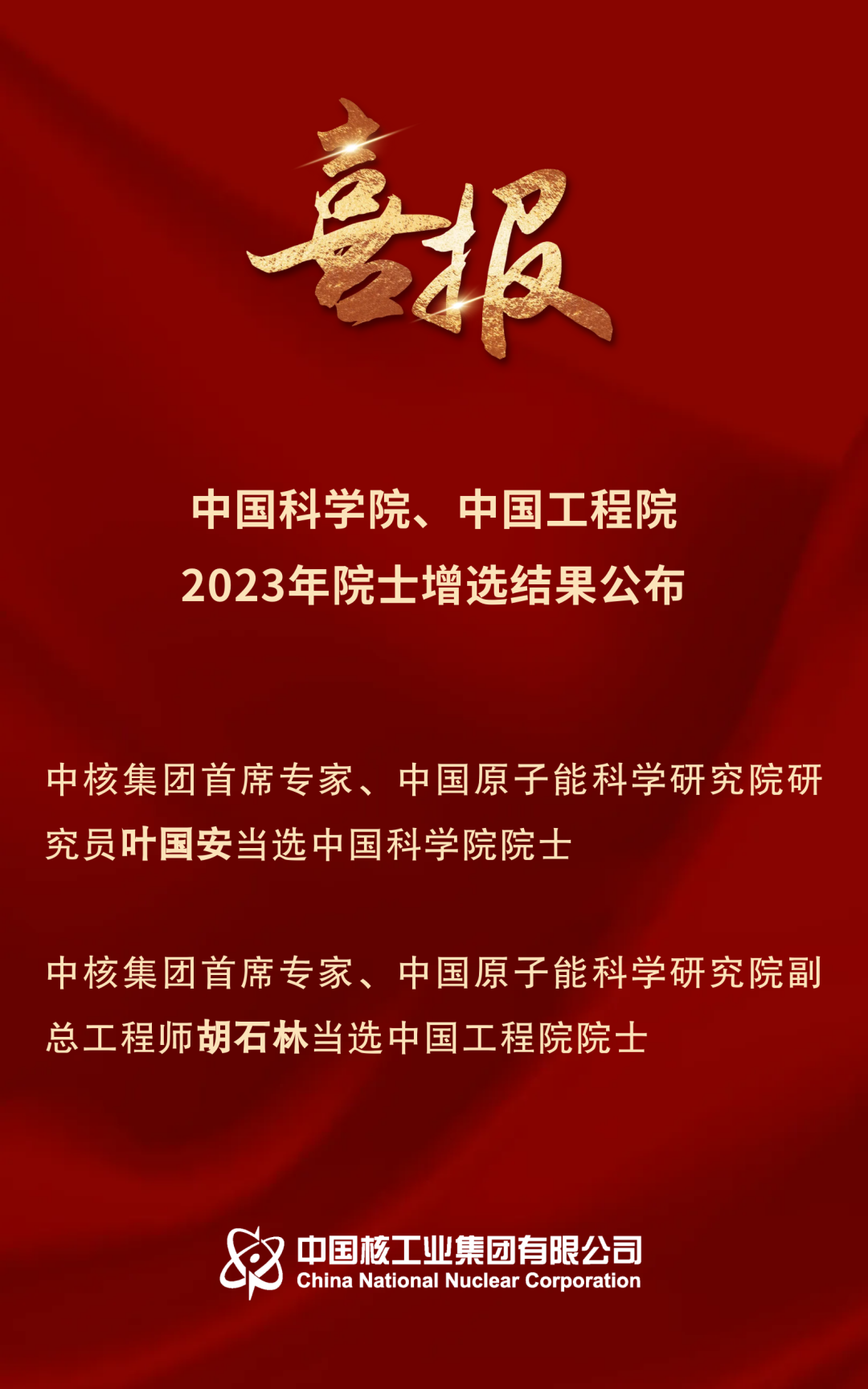 11月22日,2023年兩院院士增選結(jié)果正式揭曉,中核集團首席專家、中國原子能科學研究院研究員葉國安當選中國科學院院士;中核集團首席專家、中國原子能科學研究院副總工程師胡石林當選中國工程院院士。