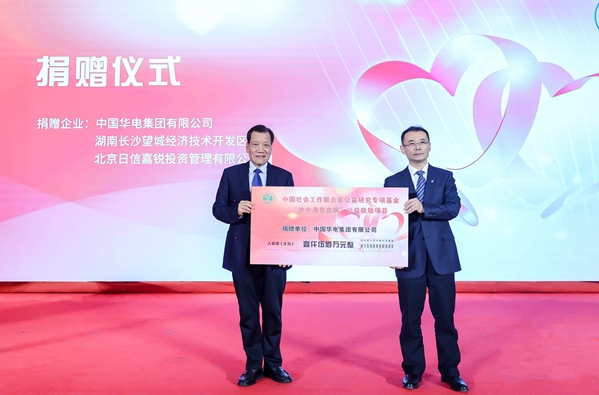 啟動(dòng)儀式上,魏禮群、陳存根等領(lǐng)導(dǎo)同志代表中國(guó)社會(huì)工作聯(lián)合會(huì)共同為中國(guó)華電集團(tuán)有限公司、湖南長(zhǎng)沙望城經(jīng)濟(jì)技術(shù)開發(fā)區(qū)、北京日信嘉銳投資管理有限公司等十家愛心企業(yè)頒發(fā)“支持社會(huì)工作事業(yè)發(fā)展 社會(huì)責(zé)任愛心企業(yè)”獎(jiǎng)。