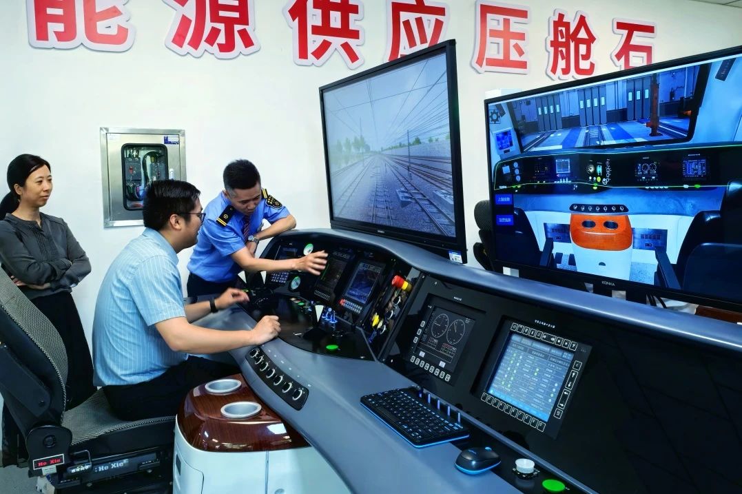 朔黃鐵路員工在介紹列車模擬駕駛操作平臺(tái)