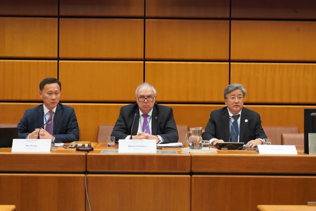 當(dāng)?shù)貢r間18日上午,余劍鋒與國際原子能機(jī)構(gòu)副總干事丘達(dá)科夫共同在“驅(qū)動未來、引領(lǐng)零碳之路”主題邊會上致辭。