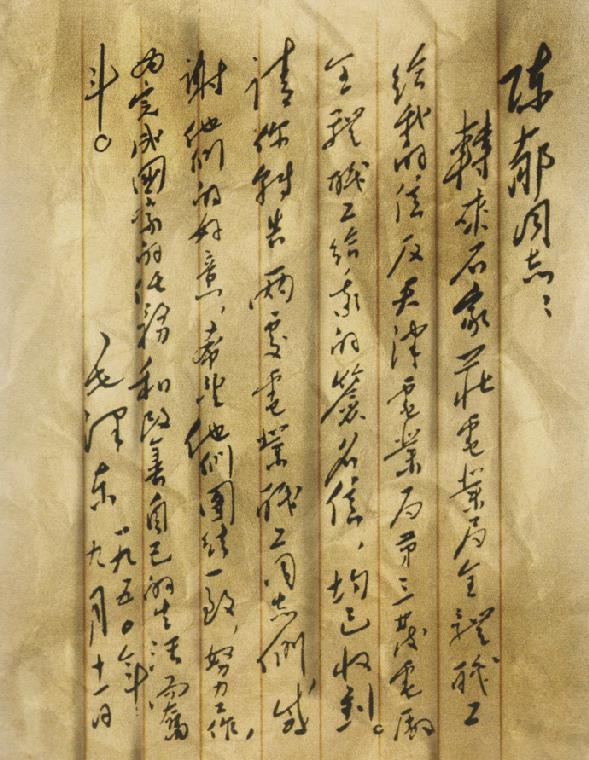 毛主席回信發(fā)表于1950年人民日報,原件作為歷史文物收藏于中央檔案館
