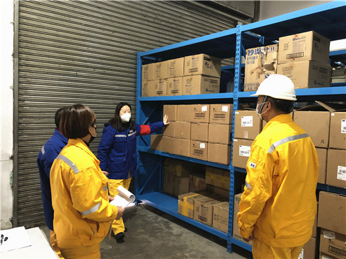 本次檢查采取“對賬銷號”的形式嚴(yán)格對照擬定的《復(fù)工復(fù)產(chǎn)疫情防控監(jiān)督檢查表》《江蘇大區(qū)疫情防控監(jiān)督工作表》進(jìn)行檢查,確保檢查內(nèi)容全覆蓋、檢查要點(diǎn)不遺漏。檢查組先后前往EHS部、辦公室、技術(shù)支持部、發(fā)電部檢查復(fù)工復(fù)產(chǎn)與疫情防控工作的制度建立、責(zé)任落實(shí)、人員防護(hù)、防疫準(zhǔn)備等情況,掌握總體工作開展情況和必要的臺賬資料;同時(shí)深入公司食堂及倉庫區(qū)域,全面檢查食堂區(qū)域的菜品采購及入庫、衛(wèi)生消毒、體溫檢測、分餐規(guī)定等疫情防控措施落實(shí)情況,以及倉庫區(qū)域的防護(hù)物品儲備情況。