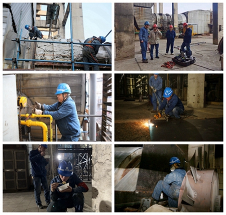 1月1日一上班沒多久,該公司熱機(jī)二班人員就接到了一個(gè)“大工程”——搶修1號(hào)爐B引風(fēng)機(jī)動(dòng)葉。引風(fēng)機(jī)作為風(fēng)煙系統(tǒng)的重要設(shè)備,其動(dòng)葉不能正常操作將直接影響到機(jī)組的高效穩(wěn)定運(yùn)行。盡管空氣中充斥著難聞的硫化物味道,但熱機(jī)二班搶修人員毫不畏懼,加班加點(diǎn),攻堅(jiān)克難,在起重人員、焊工人員等的協(xié)助下,通過齊心協(xié)力吊裝大鋼板阻斷返回的煙氣,保證人員安全作業(yè),于次日凌晨4時(shí)多完成B引風(fēng)機(jī)動(dòng)葉搶修。為了節(jié)省時(shí)間,搶修人員中飯和晚飯都是在現(xiàn)場(chǎng)或站著、或蹲著吃盒飯解決。期間,該公司黨委委員、副總經(jīng)理劉陸軍和生產(chǎn)各級(jí)管理人員多次到現(xiàn)場(chǎng)監(jiān)督指導(dǎo),確?,F(xiàn)場(chǎng)作業(yè)安全。