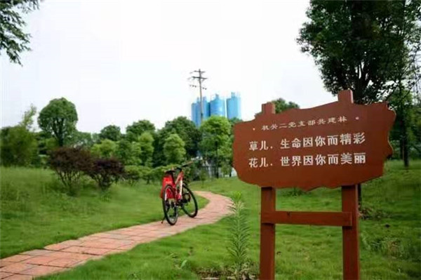 “草兒,生命因你而精彩,花兒,世界因你而美麗。”這是黨支部共建林的提示牌語。陽春四月,草長鶯飛,漫步在這公園一般美麗的生產區(qū),心情無限美好,我們生產清潔能源,我們建設美麗家園。