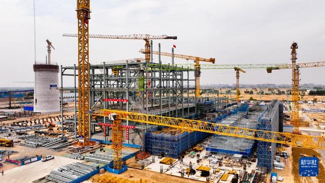 6月5日拍攝的位于山東省鄆城縣的大唐鄆城630℃國(guó)家電力示范項(xiàng)目建設(shè)現(xiàn)場(chǎng)(無(wú)人機(jī)照片)。