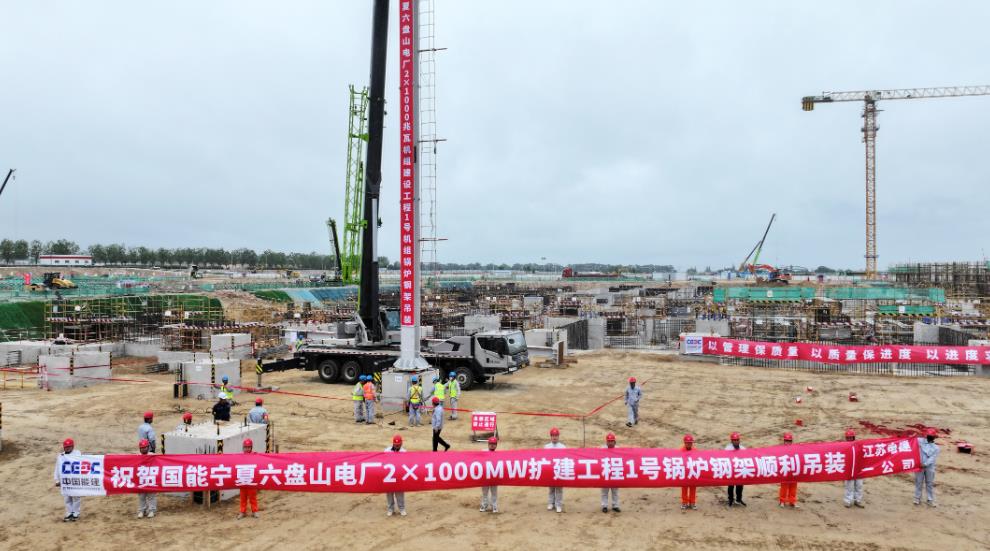 9月6日,由中國能建西北院設計、江蘇電建一公司承建的國能寧夏六盤山電廠2×1000兆瓦擴建工程1號鍋爐本體鋼結構首根立柱吊裝。