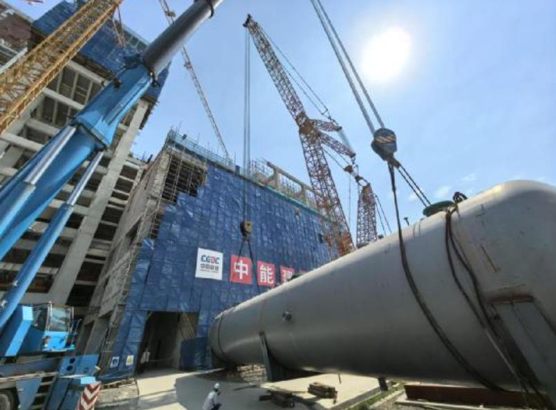 本次吊裝的除氧器,長22.6米,總重90噸,采用450噸履帶吊和400噸汽車吊雙機(jī)抬吊的方式吊裝,經(jīng)過2小時(shí)就位至除氧間32.5米層。為確保除氧器吊裝工作順利完成,項(xiàng)目部通過科學(xué)謀劃,嫻熟運(yùn)用“四力工作法”,從人員組織、機(jī)械調(diào)度、配合協(xié)調(diào)等多方面入手,多次對除氧器吊裝專項(xiàng)施工方案進(jìn)行評審,開展全方位、多角度的安全隱患排查工作,針對施工和管理人員進(jìn)行詳細(xì)的安全、技術(shù)交底,確保吊裝前準(zhǔn)備工作充分無遺漏。在吊裝過程中,項(xiàng)目始終牢記沒有安全這個(gè)“1”,其他要素都是“0”的安全觀,通過設(shè)立作業(yè)警戒區(qū)域,安全部、機(jī)械化科全程監(jiān)督旁站,現(xiàn)場指揮人員信號準(zhǔn)確,與操作人員協(xié)調(diào)一致、配合默契。從除氧器起吊、提升、轉(zhuǎn)向、就位整個(gè)吊裝過程安全、平穩(wěn)、有序的進(jìn)行。