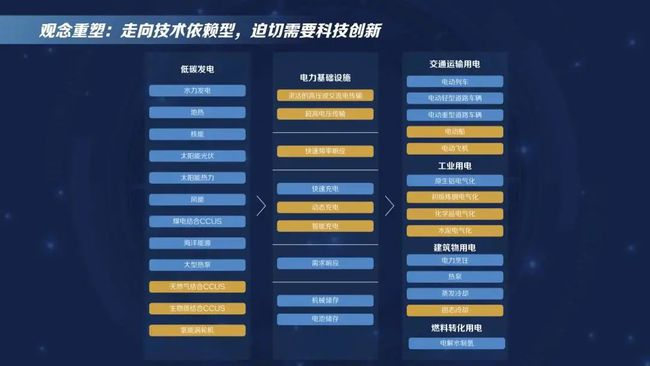 關(guān)于能源結(jié)構(gòu)降碳,它的核心是要大幅度地提升可再生能源或者非化石能源的比例。非化石能源最典型的有四個(gè),分別是風(fēng)能、太陽能、水能、核能。其中風(fēng)能、太陽能將來占的比例會更高。全球風(fēng)、光資源分布相對更均勻,誰能夠更好地掌握抓取風(fēng)、光資源,即開發(fā)出大規(guī)模應(yīng)用風(fēng)電、光伏電的領(lǐng)先技術(shù)體系,誰就獲得了長期經(jīng)濟(jì)發(fā)展支撐能力的提升。這是一個(gè)資源依賴型走向技術(shù)依賴型的過程,未來這個(gè)過程會使我們更多地關(guān)注關(guān)鍵技術(shù)。