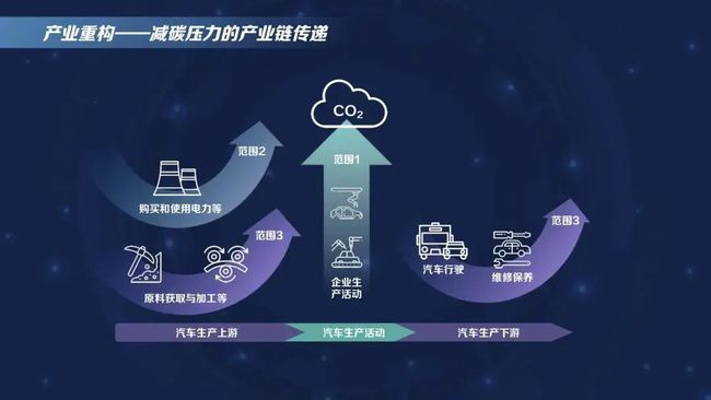 另外,產(chǎn)業(yè)重構(gòu)方面,減碳壓力的產(chǎn)業(yè)鏈傳遞也很突出?,F(xiàn)在越來越多的全球性大公司自主承諾減排,原來對一家企業(yè)到底排多少碳主要看它的生產(chǎn)過程,但現(xiàn)在已經(jīng)擴(kuò)大到產(chǎn)業(yè)鏈。一個(gè)產(chǎn)業(yè)鏈包括上游的原料和下游產(chǎn)品的應(yīng)用,把上下游綜合考慮起來,就會形成減碳壓力的產(chǎn)業(yè)鏈傳遞。比如,中國現(xiàn)在是世界上最大的小汽車生產(chǎn)和消費(fèi)市場,每年產(chǎn)銷2500—3000萬輛,這個(gè)量是美國和日本加起來的總和,這么大的量,對鋼材會有比較大的需求。一家承諾了整個(gè)產(chǎn)業(yè)鏈上要減碳的跨國公司在生產(chǎn)小汽車時(shí),就會要求上游生產(chǎn)鋼材的廠家也要跟著它減碳,這樣會形成倒逼,煉鋼廠如果達(dá)不到它的要求,它就會去找其他能達(dá)到要求的供應(yīng)商,所以在自主減排的目標(biāo)實(shí)現(xiàn)里會形成新的壓力傳遞,這是未來產(chǎn)業(yè)重構(gòu)里非常重要的驅(qū)動(dòng)因素。