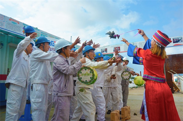 “粽情粽意,端午迎祥,堅(jiān)守崗位,履職盡責(zé)……”這是中國能建安徽電建二公司防城港項(xiàng)目部張富班早班會(huì)上高喊口號(hào)的情景。端午前夕,身穿壯族服飾的小姑娘黃發(fā)娟將粽子串起并拋出,班組成員爭相伸手接。只見,20余名施工人員拿著粽子,剝著鴨蛋,有說有笑。端午未至,可濃濃的粽香已彌漫整個(gè)核電現(xiàn)場……