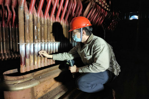16:30,工程部值班人員現(xiàn)場監(jiān)督鍋爐腐蝕檢測工作開展情況,對照檢測方案,檢查鍋爐腐蝕檢測的位置。