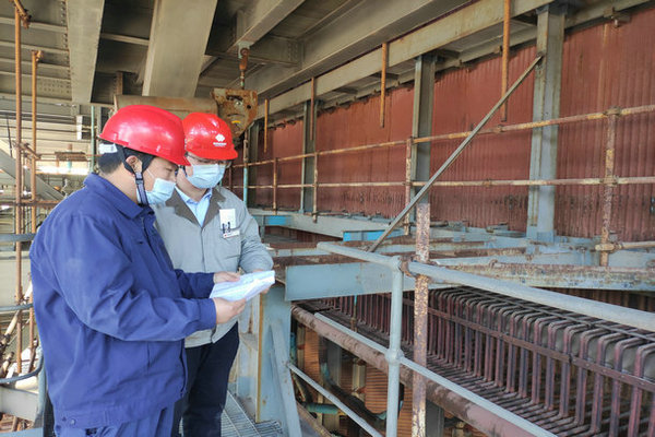 10:30,為保證現(xiàn)場設(shè)備具備復(fù)工條件,工程部值班人員全面深入現(xiàn)場,開展設(shè)備條件排查工作,鍋爐專業(yè)對#1鍋爐中間集箱手孔進(jìn)行確認(rèn)。