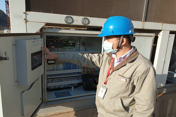17:15,生產(chǎn)準(zhǔn)備部值班人員檢查制冷站臨時(shí)風(fēng)冷機(jī)組運(yùn)行情況,保證廠前區(qū)供暖正常。