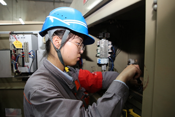 電控班吳皓正在2號(hào)機(jī)6kV室對更換后的B排粉機(jī)開關(guān)二次插板進(jìn)行接線