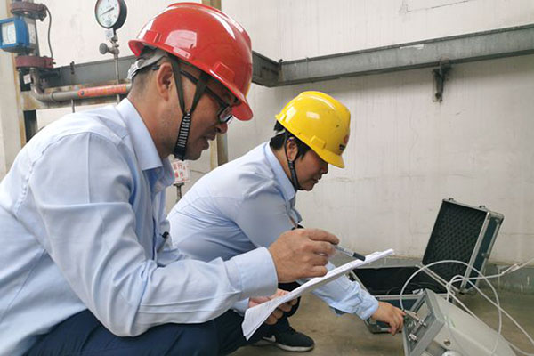 圖為該公司生產(chǎn)運(yùn)行人員正在測入廠氫氣純度