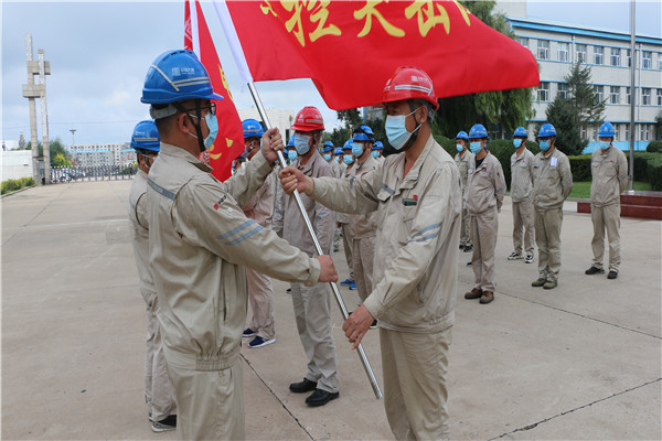 本次授旗儀式,旨在發(fā)揮集體智慧和優(yōu)勢,全面彰顯長電職工勇于擔當、樂于奉獻的精神,尤其在我廠承攬查干湖小鎮(zhèn)供熱項目、松原城區(qū)供熱開發(fā)以及綠電園區(qū)等發(fā)展項目全力推進的重要時刻,我們更要發(fā)揮突擊隊的作用,立足崗位、攻堅克難、無私奉獻,積極應對新形勢新任務新挑戰(zhàn),為推進企業(yè)轉型發(fā)展貢獻力量。