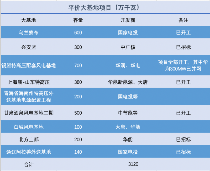 平價風(fēng)電15.9GW+大基地23GW+云南7.9GW=46.8GW
