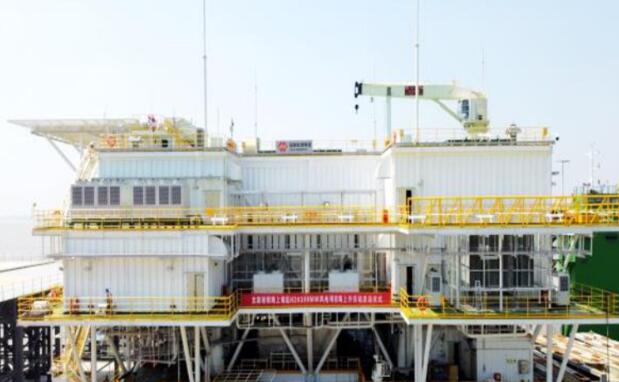 該座220千伏海上升壓站完全由國內(nèi)自主設(shè)計(jì)、制造、安裝,下部基礎(chǔ)采用樁基導(dǎo)管架基礎(chǔ)型式,上部主體分為三層,平面尺寸約50米長、45米寬,高23米,總重約4000噸,規(guī)劃容量40萬千瓦。在設(shè)計(jì)期間,龍?jiān)措娏εc設(shè)計(jì)單位通過多輪設(shè)備選型和結(jié)構(gòu)布置調(diào)整,不斷優(yōu)化工程量,使海上升壓站在同等容量、同樣功能、同類設(shè)備布置的海上升壓站中重量最輕。該站于8月下旬發(fā)運(yùn),自南向北航行約200海里,于9月初到達(dá)安裝點(diǎn)位。經(jīng)過約10小時(shí)的周密施工,終于在9月9日實(shí)現(xiàn)了海上升壓站主體與下部基礎(chǔ)一次合攏。此次升壓站安裝工程,主體及基礎(chǔ)累計(jì)吊裝重量約6000噸,是名副其實(shí)的海上“巨無霸”。該升壓站承擔(dān)了90臺(tái)4.5兆瓦海上風(fēng)機(jī)的升壓“服務(wù)”,項(xiàng)目將于年底前并網(wǎng)發(fā)電。