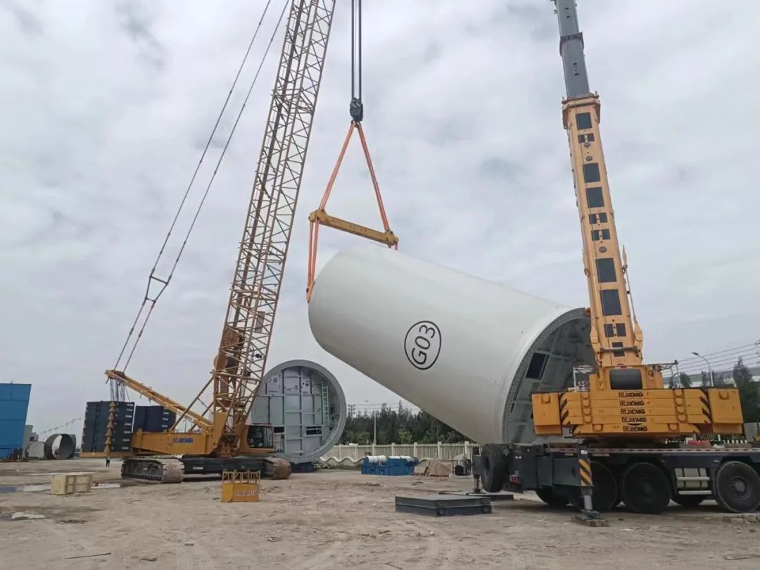 漳浦六鰲海上風(fēng)電場(chǎng)二期項(xiàng)目規(guī)劃場(chǎng)址位于漳浦六鰲半島東南側(cè)外海海域,項(xiàng)目總裝機(jī)容量400兆瓦,該項(xiàng)目是華東六省一市(含粵東)通過(guò)審批的容量最大的海上風(fēng)電項(xiàng)目。其中由福清公司承制該項(xiàng)目8套東方電氣13.0兆瓦機(jī)型海上風(fēng)電塔筒,最大直徑為8米,總高度119米,單套約747.8噸,其中底段塔筒重量為167噸,因海上塔筒安裝作業(yè)條件的特殊性,底段塔筒部分內(nèi)飾件、電氣件/柜的安裝均在塔筒制造廠內(nèi)完成,且底段塔筒要求立式安裝及運(yùn)輸。