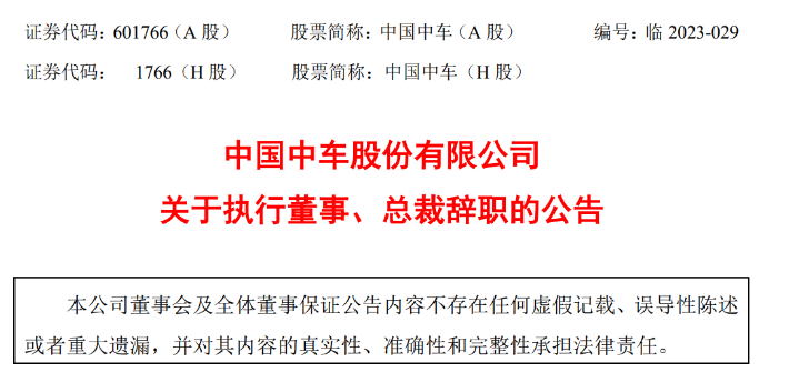 公告披露,2023年9月12日,中國中車董事會收到執(zhí)行董事、總裁樓齊良先生的辭職報告。樓齊良先生因工作調(diào)整原因辭去公司執(zhí)行董事、總裁、董事會戰(zhàn)略委員會委員、提名委員會委員職務(wù)。同時, 辭去《香港聯(lián)合交易所有限公司證券上市規(guī)則》第3.05條項下的公司授權(quán)代表職務(wù)。辭職后,樓齊良先生不在公司及控股子公司擔任任何職務(wù)。