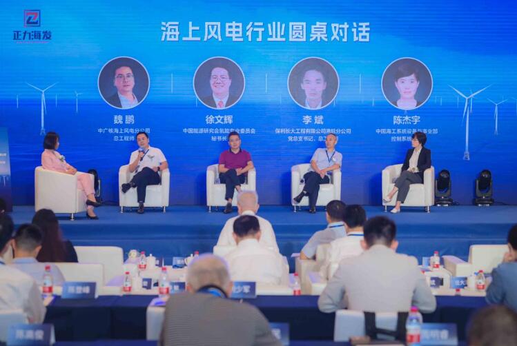 主旨演講后,由正力海發(fā)公司總裁高玲總主持,中廣核工程公司海上風(fēng)電公司總工程師魏鵬、國能源研究會(huì)氫能專業(yè)委員會(huì)秘書長(zhǎng)徐文輝、中保利長(zhǎng)大工程有限公司港航分公司黨總支書記、總工程師李斌、中國海工系統(tǒng)設(shè)備與事業(yè)部控制系統(tǒng)專家陳杰宇4位嘉賓的圓桌對(duì)話,圍繞中國海風(fēng)拓展國際市場(chǎng)的機(jī)遇和挑戰(zhàn)、海上風(fēng)電制氫技術(shù)發(fā)展及未來展望、深水風(fēng)電支腿船如何助力浮式風(fēng)機(jī)建設(shè)、海工裝備國產(chǎn)化的思考四個(gè)方面進(jìn)行深入探討,四位嘉賓專業(yè)見解和經(jīng)驗(yàn),展現(xiàn)了海風(fēng)市場(chǎng)、海上風(fēng)電、海工建設(shè)、海工裝備在未來的發(fā)展中具有廣闊的前景和未來,海洋能源、海洋工程大有可為。