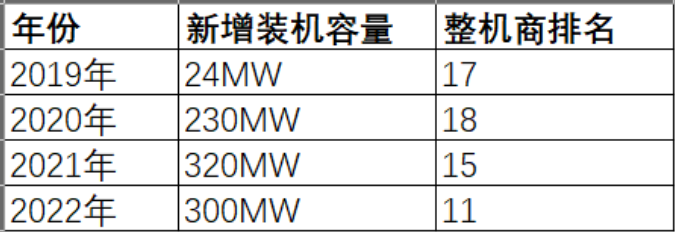 在華儀電氣正處在資本市場的水深火熱之時,2020年退市并逐漸卸掉包袱的華銳風(fēng)電,近年來卻表現(xiàn)出強(qiáng)勁的增長勢頭。2019-2022年,華銳風(fēng)電新增裝機(jī)排名不斷向上提升。