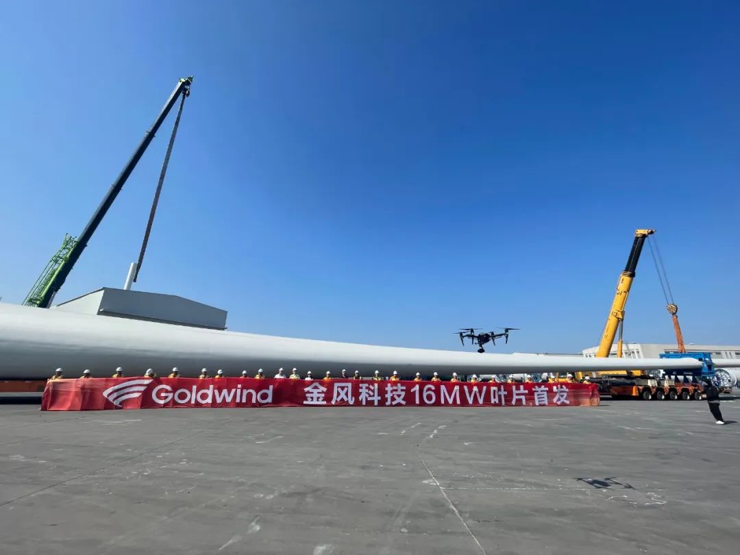 金風(fēng)科技16MW海上風(fēng)電機(jī)組的單支葉片長(zhǎng)123米,能夠同時(shí)容納300個(gè)成年人并排站在上面;機(jī)組葉輪直徑達(dá)到252米,相當(dāng)于6架C919客機(jī)首尾相連,掃風(fēng)面積相當(dāng)于7個(gè)足球場(chǎng)。同時(shí),16MW機(jī)組葉片的內(nèi)部主梁結(jié)構(gòu)首次采用碳纖維材料,重量減輕了20%,96%以上的材料實(shí)現(xiàn)了國(guó)產(chǎn)化;技術(shù)工藝上更擁有100%的自主知識(shí)產(chǎn)權(quán)。這為我國(guó)風(fēng)電技術(shù)走向國(guó)際市場(chǎng)打下了堅(jiān)實(shí)的基礎(chǔ)。