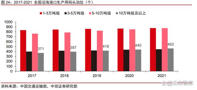 碼頭資源稀缺,港口岸線審批難度大。碼頭建設(shè)需通過省政府審批滿足規(guī)劃,港口岸 線使用權(quán)需要通過國家交通運輸部批復(fù),碼頭岸線的資源審批難度持續(xù)加大,同時港口建 設(shè)需要自然條件良好的岸線資源,對周邊配套資源也有較高的要求。據(jù)中國交通運輸部披 露的數(shù)據(jù),截至 2021 年底,我國萬噸級及以上泊位數(shù)量共計 2659 個,風(fēng)電塔筒管樁運輸 所需的 10 萬噸級及以上泊位數(shù)量共計 463 個,占萬噸級及以上泊位數(shù)量的 17%,年新增 數(shù)僅 23 個。因此已獲審批的港口碼頭等生產(chǎn)基地逐步成為稀缺資源,掌握相關(guān)資源的廠 商先發(fā)優(yōu)勢顯著。
