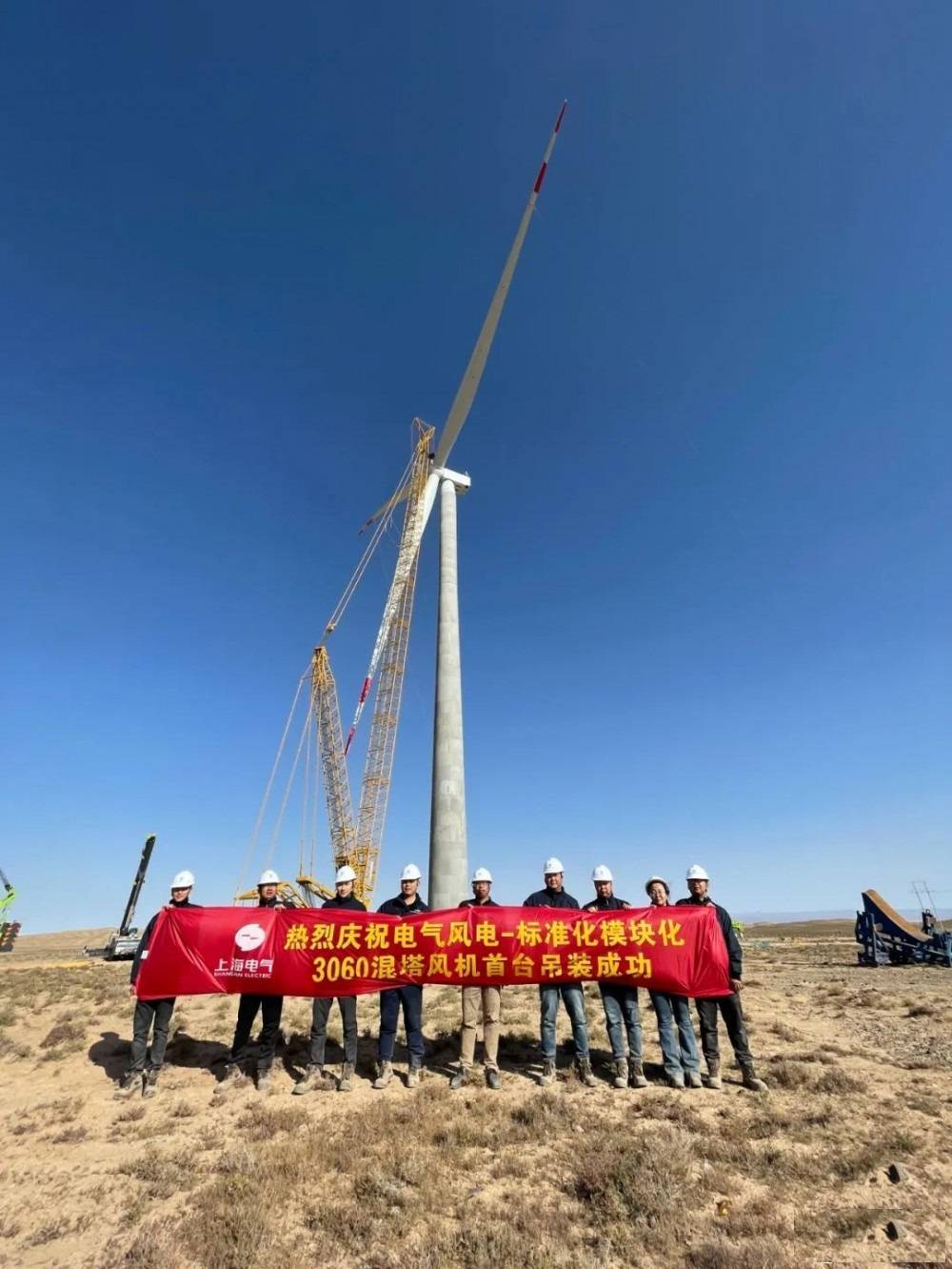 近年來(lái),混塔(鋼-混凝土混合塔架)憑借著剛度大、安全穩(wěn)定性高、原材料成本低等各項(xiàng)優(yōu)勢(shì)在風(fēng)切變指數(shù)較高的低風(fēng)速地區(qū)得到了廣泛應(yīng)用,為用戶(hù)帶來(lái)了明顯的收益、得到了用戶(hù)的普遍認(rèn)可。2022年10月21日,電氣風(fēng)電首臺(tái)自研自制的標(biāo)準(zhǔn)化、模塊化“3060混塔”型風(fēng)電機(jī)組卓刻平臺(tái)WH6.25N-182,在甘肅省金昌市潮水山戈壁灘順利完成吊裝。該機(jī)組的順利吊裝標(biāo)志著:電氣風(fēng)電自研混塔正式進(jìn)入批量商業(yè)化應(yīng)用階段。