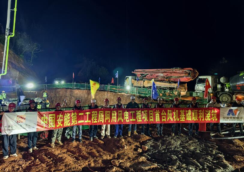 中國(guó)電力網(wǎng)訊(通訊員徐迎華、張澤華報(bào)道) 日前,隨著最后一車混凝土澆入基礎(chǔ),由中國(guó)安能二局承建的云南阿用風(fēng)電項(xiàng)目首臺(tái)風(fēng)機(jī)基礎(chǔ)澆筑順利完成,標(biāo)志著項(xiàng)目進(jìn)入主體工程施工階段。