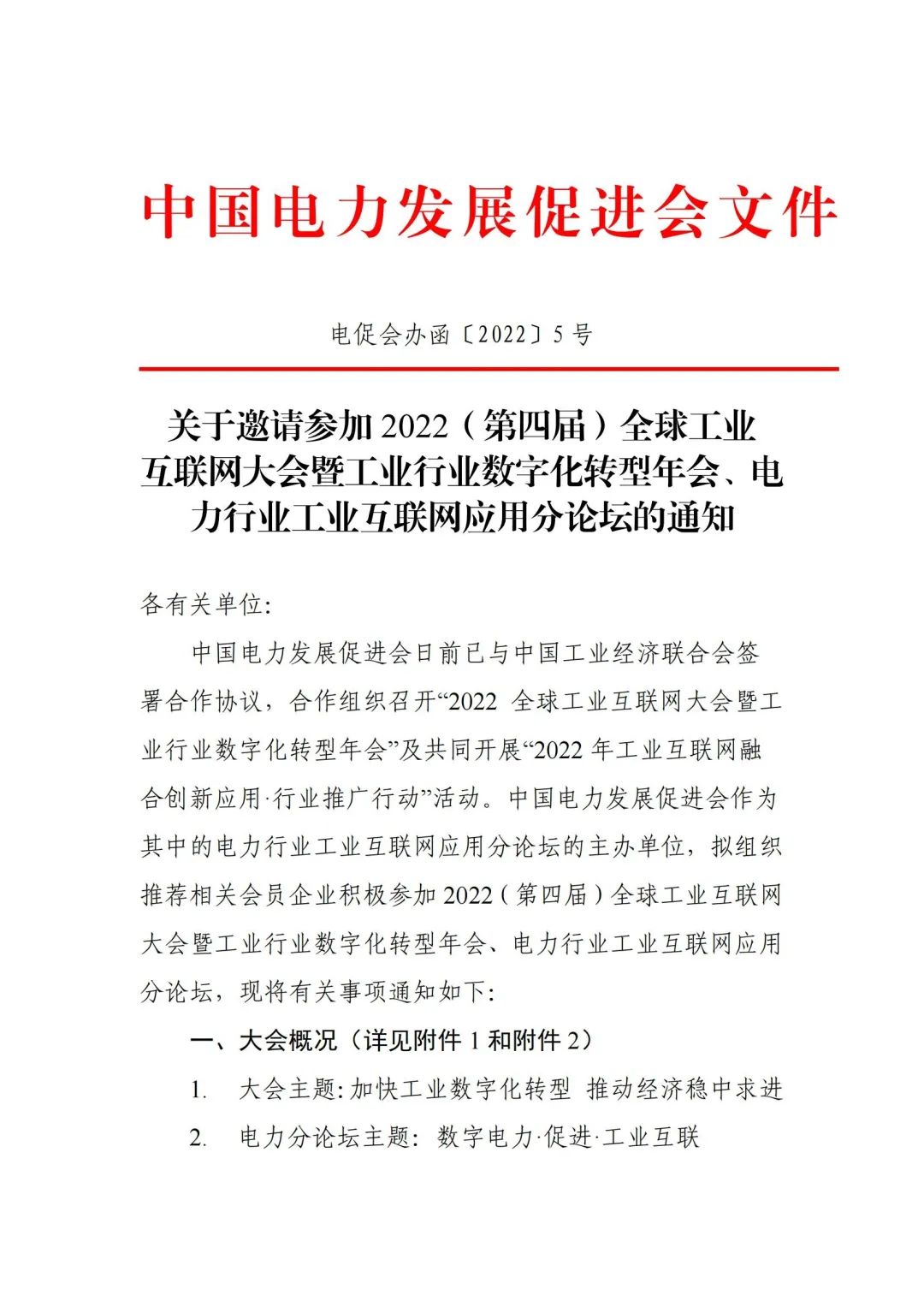 關(guān)于邀請(qǐng)參加 2022(第四屆)全球工業(yè) 互聯(lián)網(wǎng)大會(huì)暨工業(yè)行業(yè)數(shù)字化轉(zhuǎn)型年會(huì)、電力行業(yè)工業(yè)互聯(lián)網(wǎng)應(yīng)用分論壇的通知