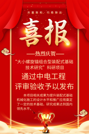中國電力網(wǎng)訊 由中國能源建設集團遼寧電力勘測設計院有限公司自主研發(fā)的“大小螺旋錨組合型裝配式基礎技術研究”科研項目通過了中電工程評審驗收并于近日發(fā)布。