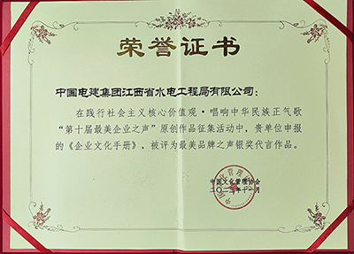 六十七年崢嶸歲月,六十七載光輝歷程,江西水電沉積著不同時(shí)期“江水人”的深刻記憶,繼承和發(fā)揚(yáng)優(yōu)秀的企業(yè)文化精神。“十四五”期間,江西水電在轉(zhuǎn)型升級(jí)與量質(zhì)提升的重要時(shí)期,大力實(shí)施“文化強(qiáng)企”戰(zhàn)略,系統(tǒng)梳理和提升江水文化理念體系,量身打造“理念、行為、視覺(jué)、制度”等系統(tǒng)文化;大力踐行“匠造時(shí)代精品 澤潤(rùn)美好生活”的企業(yè)使命,推動(dòng)“整合資源、搭建平臺(tái)、開(kāi)放合作、共生共贏”的經(jīng)營(yíng)理念的融合,注重把“江水文化”底蘊(yùn)融入生產(chǎn)經(jīng)營(yíng),以文化建設(shè)助推品牌建設(shè),極大提升企業(yè)知名度、美譽(yù)度。