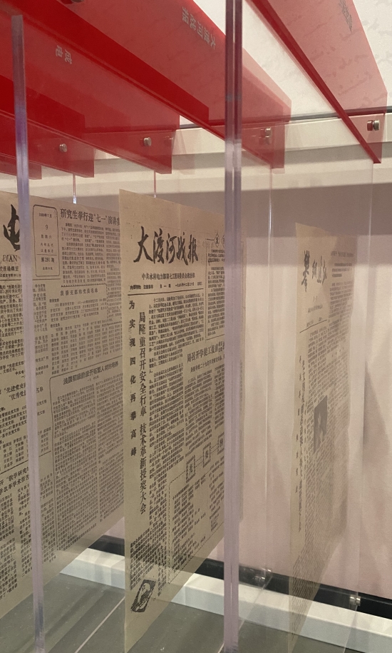 現(xiàn)場展出的大渡河水電報(bào)創(chuàng)刊號為《大渡河戰(zhàn)報(bào)》,出刊于1978年12月,誕生于十一屆三中全會召開時(shí)期,4開4版,與解放思想,改革開放同行。發(fā)刊詞上,明確辦報(bào)方針:實(shí)事求是,群眾路線,力求做到尖銳、潑辣、鮮明。一路走來,初心不改,為歷史發(fā)聲,為時(shí)代立傳,報(bào)道水電七局重大歷史事件、重大工程節(jié)點(diǎn)、職工工作生活感悟等。