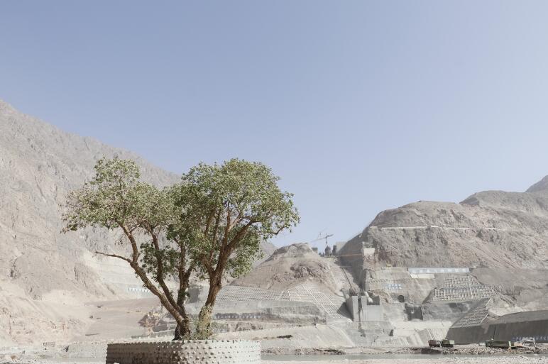 在工程導(dǎo)流洞出口前的河岸邊,幾棵生長(zhǎng)百年的原生胡楊樹(shù),日復(fù)一日見(jiàn)證著大壩的穩(wěn)步增高?,F(xiàn)在,建設(shè)者們?yōu)楹鷹顦?shù)修起了保護(hù)墻,在奮力筑牢大國(guó)重器中等待著春暖樹(shù)綠。