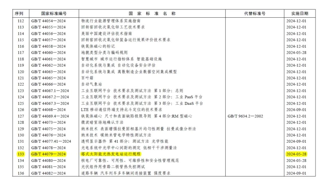 近日,中國能建工程研究院和中國能建科技發(fā)展有限公司共同主導(dǎo)編制的GB/T44079-2024《塔式太陽能光熱發(fā)電站運行規(guī)程》(Code for Operation of Solar Power Tower Plant)正式發(fā)布實施。該標(biāo)準(zhǔn)由中國能建主導(dǎo)編制,是我國首個塔式光熱電站運行標(biāo)準(zhǔn),也是中國能建標(biāo)準(zhǔn)化工作領(lǐng)域的再一次突破。