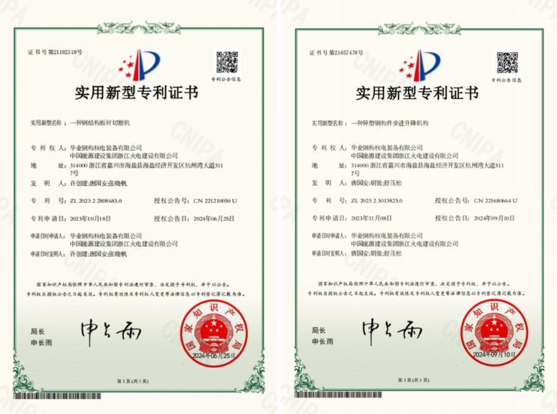 近日,中國能建浙江火電兩項發(fā)明專利《一種鋼結(jié)構(gòu)板材切割機》和《一種異型鋼構(gòu)件步進升降機構(gòu)》獲得國家知識產(chǎn)權(quán)局授權(quán)。
