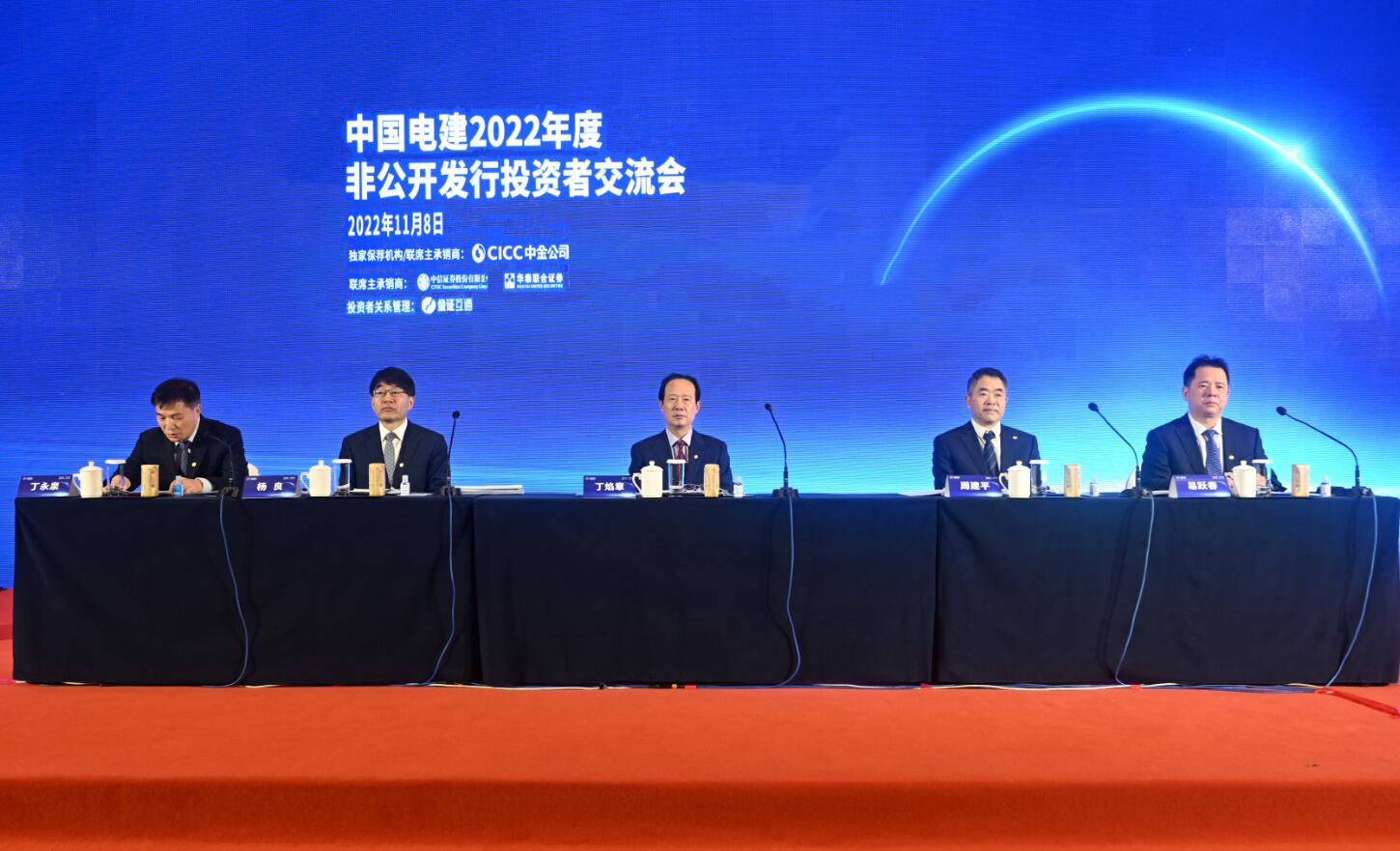 本網(wǎng)訊 11月8日,中國電建在京召開2022年度非公開發(fā)行投資者見面會。公司黨委書記、董事長丁焰章出席會議并作主題演講,對本次非公開發(fā)行方案進(jìn)行了系統(tǒng)推介。公司總會計師楊良參與投資者交流。
